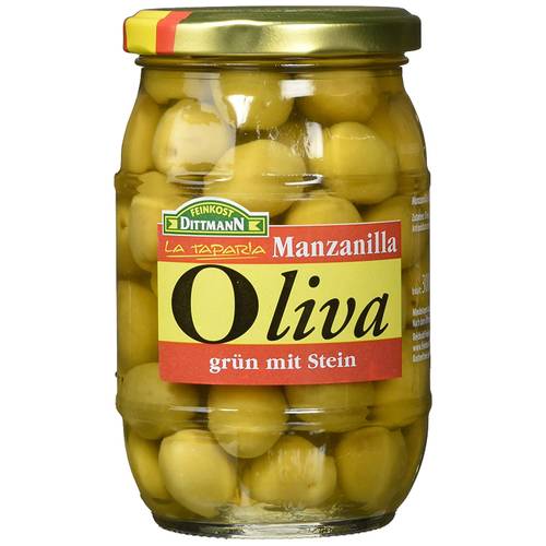 Der Hersteller (Dittmann) empfiehlt diese spanischen Oliven vor dem Verzehr für zwei Minuten abtropfen zu lassen, wie wir erfahren.