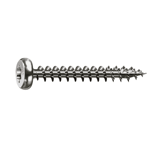 Die Spax-Schrauben verfügen über ein durchgehendes Gewinde mit 4CUT-Spitze, wodurch ein Vorbohren in vielen Hölzern nicht nötig ist.