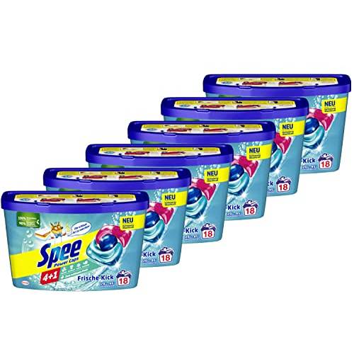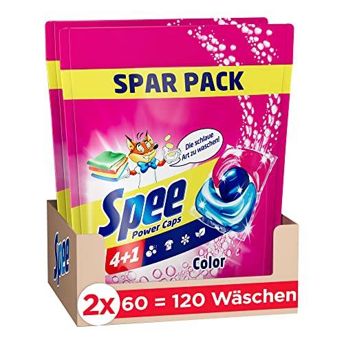 Auch Waschmittelcaps werden von Spee angeboten. Diese sind besonders einfach und schnell anzuwenden. Es muss lediglich ein Waschmittel-Cap in die Waschmaschine gelegt werden mit der Wäsche obendrauf. Anschließend können Sie den Waschgang bereits starten.