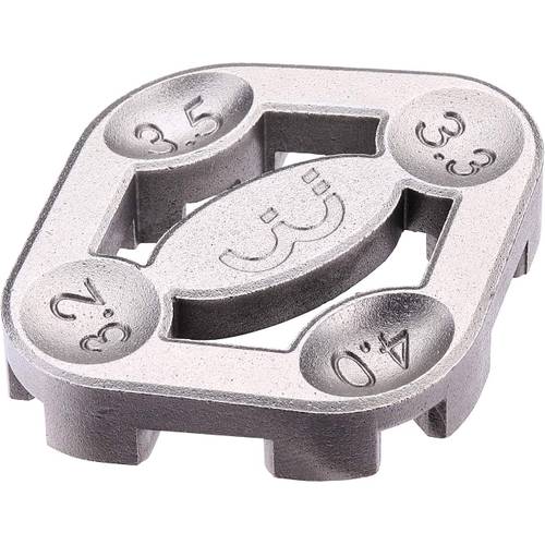 Hier sehen wir einen Btwin-Speichenschlüssel bei Decathlon, der 8 Aussparungen für die verschiednen Speichengrößen aufweist.