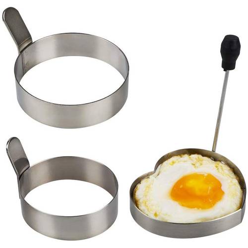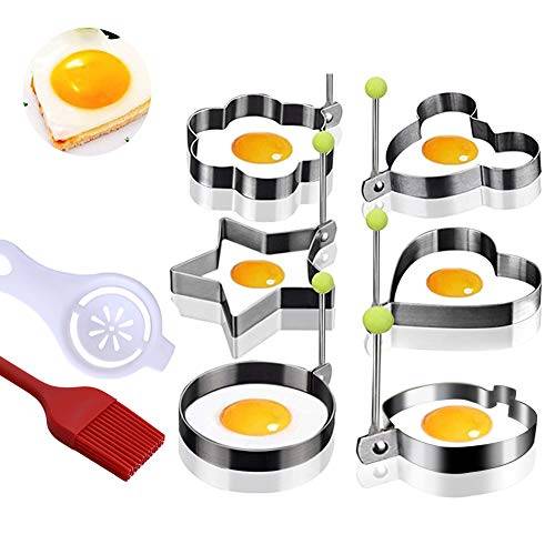 Normal in der Pfanne zerschlagen, läuft das Ei in sämtliche Richtungen davon und nimmt eine unschöne Form an. Besonders wenn Sie ein liebevolles Frühstück für Ihre Lieben vorbereiten wollen, ist dies ärgerlich. Mit einer Spiegeleiform können Sie schöne Formen zaubern, die dafür sorgen, dass das Ei in der Pfanne gleichmäßig durchgebraten wird. Spiegeleiform-Tests im Internet haben gezeigt, dass diese meist im Set verfügbar sind. Dies hat den Vorteil, dass Sie gleich mehrere Eier gleichzeitig zubereiten können.