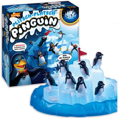 Spielidee | Jeder Spieler lässt einen Wurm in der Erde verschwinden. Der Wurm, dessen Kopf als erster wieder seinen Kopf aus der Erde streckt, gewinnt. | Jeder Spieler erhält 6 Sterne und nimmt sich 6 Steine aus dem Pool. Beim ersten Auslegen benötigt jeder Spieler 3 Steine in einer Farbe, um eine Zahlenreihe auszulegen. Nach der ersten Auslage besteht ein Zug immer aus einem von zwei Ereignissen. Derjenige, der an der Reihe ist, spielt mindestens einen Stein aus seiner Ablage. Wer nicht auslegen kann oder will, nimmt einen Stein aus dem Pool und zahlt einen Strafstern an die Bank. | Die frechen Mäuse rutschen kreuz und quer durch den großen, löchrigen Käse. Doch Vorsicht, Kater Max schleicht um die Ecken. Wer vor Schreck nicht seinen Käse fallen lässt, sondern am meisten davon sammeln kann, gewinnt das spannende Katz und Maus Spiel. | Dieses Spiel soll die Kleinen bereits an den Spieleklassiker "Mensch ärgere dich nicht" heranführen. | Bei der Hühnerolympiade versuchen die Hühner sich gegenseitig zu überholen und die Federn der Mitspieler zu klauen. Wer zuerst alle Hühner gezupft hat, gewinnt. | Pinguine müssen auf einem wackeligen Eisberg sicher platziert werden. | ||