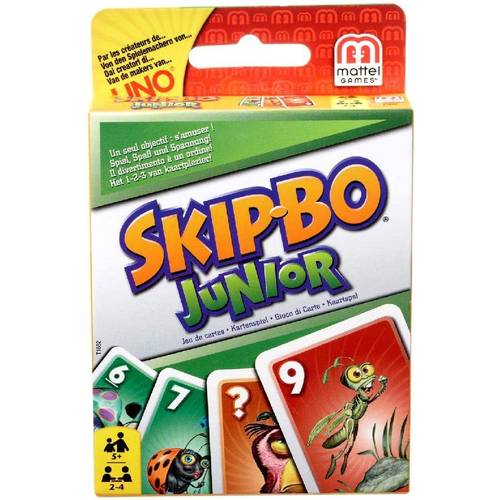 Das Mattel Games Skip-Bo Junior Kinderspiel ab fünf Jahren ist unserem Vergleich zufolge ein Kartenspiel. Das Lernziel besteht hier im Zählen und Kombinieren und wir weisen darauf hin, dass es sich für zwei bis vier Spieler eignet.