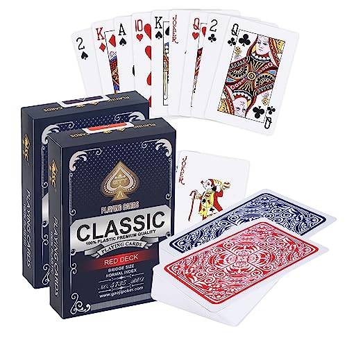 Die meisten der besten Spielkarten aus Kunststoff sind sehr strapazierfähig, knicken nicht, greifen sich nicht so schnell ab und lassen sich abwaschen, wenn mal aus Versehen ein Getränk darüberschwappt oder Sie eine Partie am Pool spielen möchten.