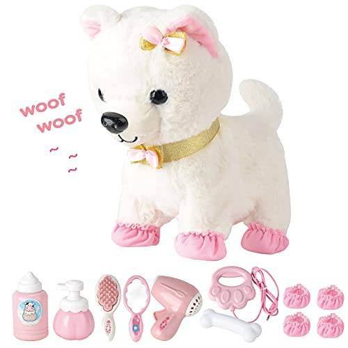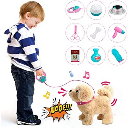 So können sie zum Beispiel mit einem Spielzeug-Hund mit Leine und Funktion spazieren gehen: Der Spielzeug-Hund, der läuft und bellt, mit Leine bewegt sich dann entweder von selbst oder wird alternativ durch das Kind gezogen. Weiter können einige der Spielzeug-Hunde an der Leine gefüttert sowie das Fell des Hundes gebürstet oder gekämmt werden.