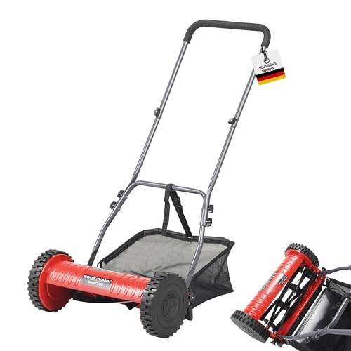 Um die Variabilität zu erhöhen, verfügt jeder Handmäher über verschiedene Schnitthöhen. So können Sie die Höhe der Schneidemesser optimal an die Höhe der Grashalme anpassen. Die einzelnen Schnitthöhen können meist stufenweise eingestellt werden, wobei vier Stufen die Regel, neun und mehr Stufen hingegen die Ausnahme sind. Bei den geprüften Produkten aus dem Spindelmäher-Vergleich 2025 lag die niedrigste Schnitthöhe bei 12 Millimetern und die höchste bei 10 cm.