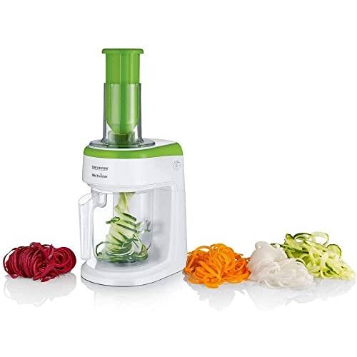 Besonders gut geeignet sind neben Zucchini Gemüsesorten wie Karotten, Kürbis, Rote Beete oder Süßkartoffel. Auch mit festen Gurken können Sie gute Ergebnisse für einen Gurkensalat erzielen. Mit einigen Geräten können Sie Kartoffeln wunderbar zu sogenannten „Kartoffel-Tornados“ verarbeiten. Beachten Sie die Angaben des Herstellers.
