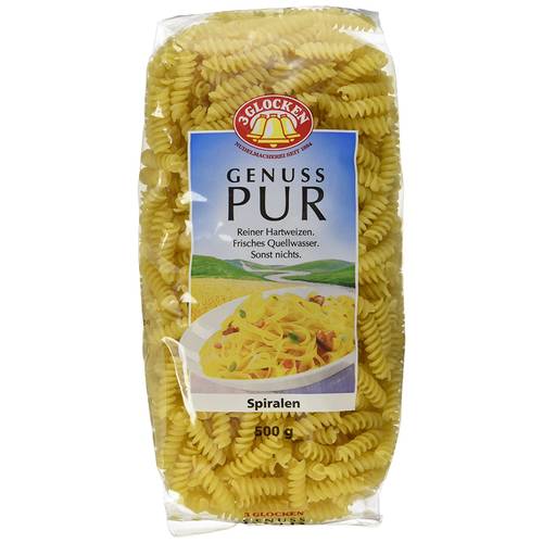 Modell | Barilla Fusilli glutenfrei | Rapunzel Emmer-Spirelli Vollkorn | Alnatura Dinkel Spirelli | Gustoni Bio Hirse-Fusilli | Ppura Bio Fusilli Emmer Pasta | Bernbacher Die Guten Feine Frischei-Nudeln Spirale | 3 Glocken Genuss Pur Spiralen | Albgold Bunte Nudeln |