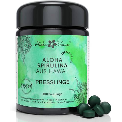 Platz 4 | Aloha Sana Spirulina | ca. 34 € | 26 Tage | 400 mg | ![]() ![]() | |