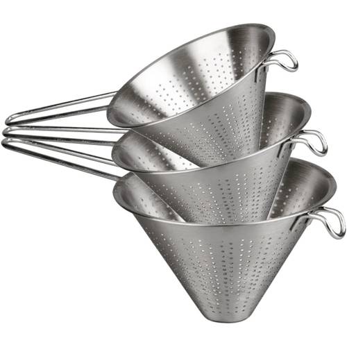 Bei einem Spitzsieb handelt es sich um ein nach unten enger zulaufendes Sieb, welches zum Abseihen von Lebensmitteln verwendet wird. Geläufig ist es vielerorts auch als Chinois (franz.) oder als Bouillonsieb. Sie können es zum Passieren von Saucen und anderen Flüssigkeiten verwenden.