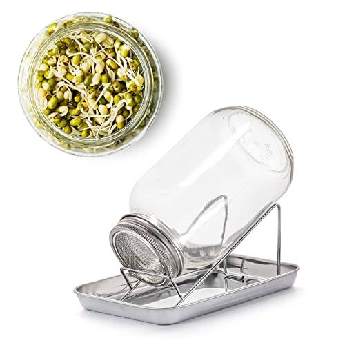 Optimalerweise sind bei Ihrem neuen Sprossenglas eine Halterung und eine Abtropfschale im Lieferumfang enthalten. Die Sprossengläser werden mit Abtropfgestell und Halterung zu einem Dekorationsstück in der Küche und erleichtern Ihnen deren Gebrauch.