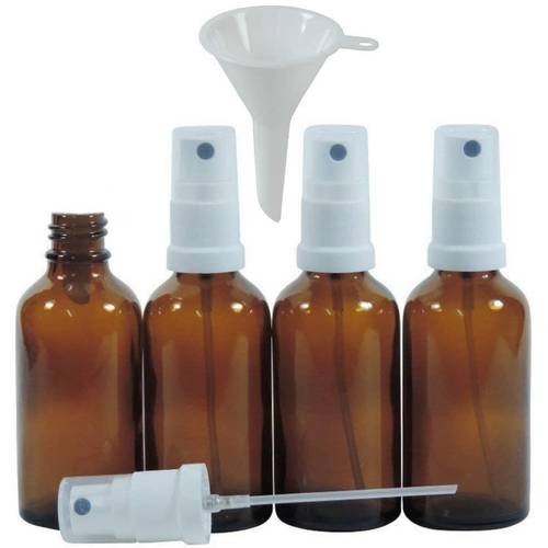 Die besten Sprühflaschen (50 ml) bestehen aus Braunglas, da dieses Material den Inhalt besonders gut vor UV-Strahlen schützt. Aus diesem Grund werden lichtempfindliche Medikamente vorzugsweise in Verpackungen aus getöntem Glas aufbewahrt.
