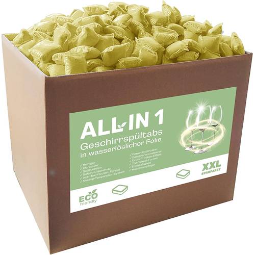 Wollen Sie Spülmaschinentabs ohne Plastik kaufen, können Sie aus diversen Packungsgrößen wählen. Spülen Sie wenig im Geschirrspüler, ist eine Packung mit vergleichsweise wenig Inhalt ausreichend. Beispielsweise die Somat-Spülmaschinen-Tabs mit 56 Tabs. Spülen Sie jedoch mehr, kommen Packungen mit bis zu 500 Tabs infrage.