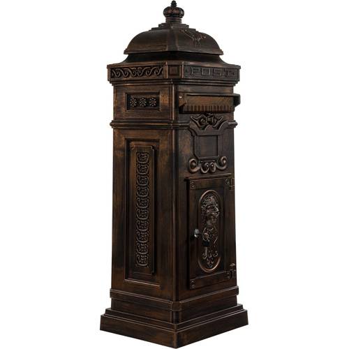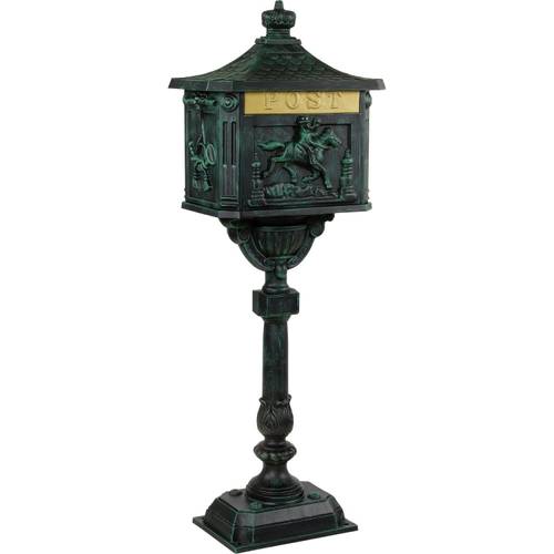 Bei diesem Primaster-Standbriefkasten wird ein Briefträgermotiv verwendet, wie wir feststellen, bei der weißen Version ist es ein reitender Bote.