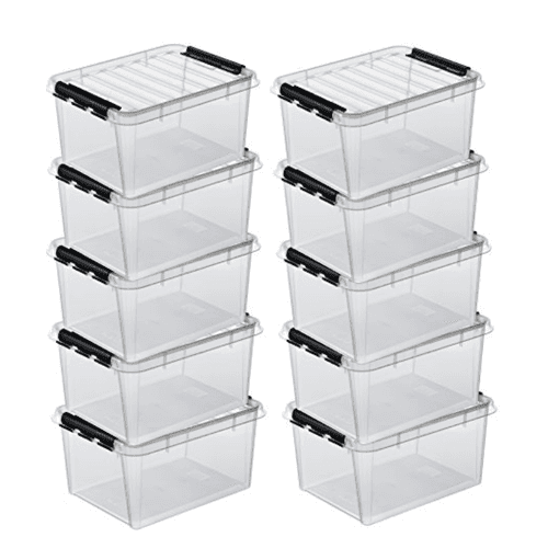 Die meisten Produkte aus unserem Stapelboxen-Vergleich gehören als Stapelkisten mit Deckel zur beliebtesten Aufbewahrungsart. Da jede einzelne Kiste einen dazugehörigen Deckel besitzt, können Sie die Kisten einzeln lagern oder auch als platzsparende Variante stapeln. Transparente Stapelboxen bieten Ihnen dabei den Vorteil, dass Sie deren Inhalt trotz Stapelung sehen können.