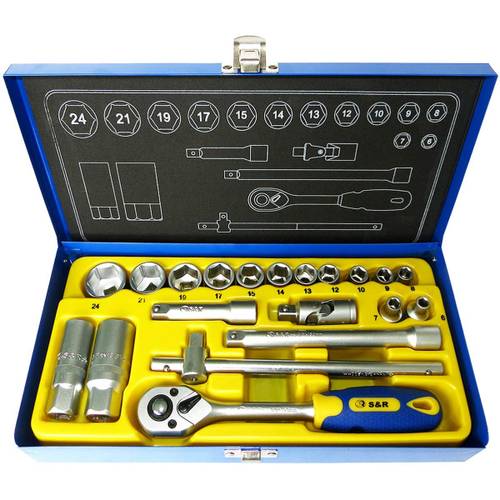 Wenn Sie einen 3/8-Zoll-Steckschlüsselsatz kaufen, erhalten Sie je nach Zusammenstellung unterschiedliches Zubehör. Besonders praktisch sind dabei die Verlängerungen. Im besten Fall können Sie zwei Verlängerungen miteinander kombinieren, um im Motorraum oder auch an einem Möbel an versteckte und sehr tiefliegende Schrauben zu gelangen. Eine gute Ergänzung dazu ist ein Drehgelenk, zumeist als Kardangelenk konstruiert. So können Sie die Ratsche noch variabler einsetzen. Mit einem Quergriff wiederum gelingt es, mehr Kraft zum Beispiel auf festsitzende Schrauben auszuüben. Sind alle drei Elemente vorhanden, lässt sich auch ein kleiner Ratschenkasten sehr vielseitig nutzen.