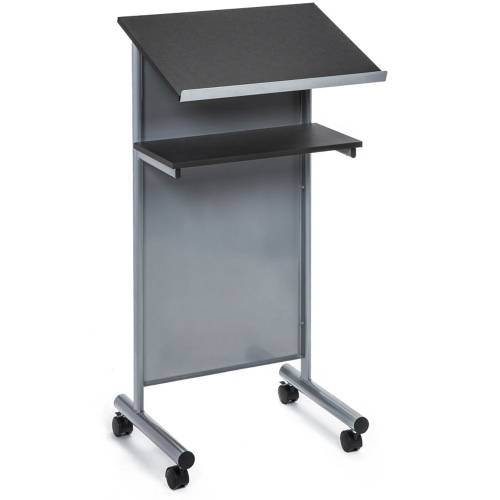 Viele Stehpulte verfügen über Rollen, dank derer Sie Ihren Arbeitsplatz beliebig verschieben können. Bei Rednerpulten für Veranstaltungsräume sind Rollen unabdingbar – möchten Sie das Stehpult jedoch als Möbelstück verwenden, wirken Exemplare mit Standfüßen meistens wohnlicher.