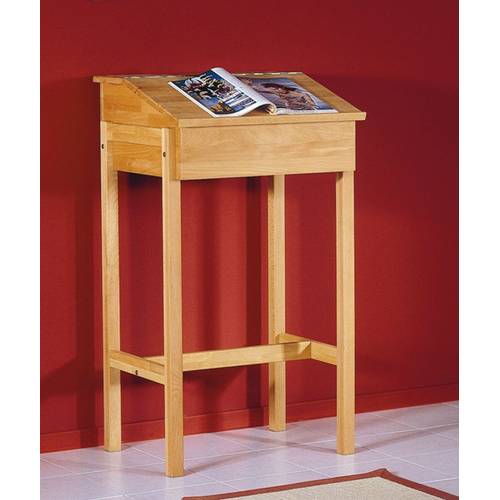 Klassische Stehpulte in Holztönen wie Buche wirken besonders warm und wohnlich, weshalb sich diese am besten für ein lauschiges Wohnzimmer eignen. Holztöne nehmen Ihrem Arbeitsplatz die Strenge und sehen mehr nach Wohnen als nach Arbeiten aus.
