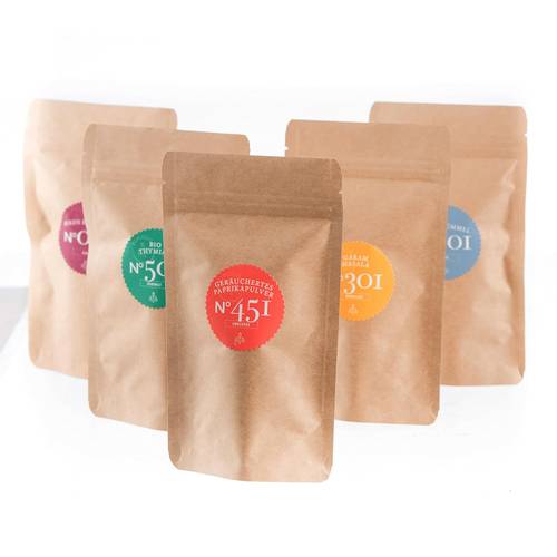 Verpackung | Metalldose | Metalldose | Pappbeutel | Schraubglas | Plastikbeutel | Pappbeutel | Plastikbeutel | Plastikbeutel |