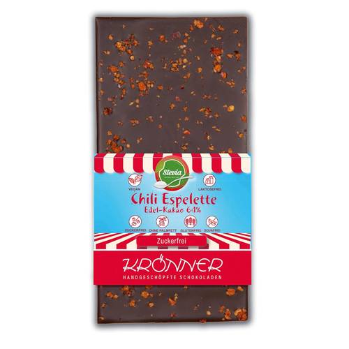 Platz 2 | Krönner Stevia-Schokolade Chili Espelette | ca. 4 € | Stevia | Erythrit | ![]() ![]() | ||