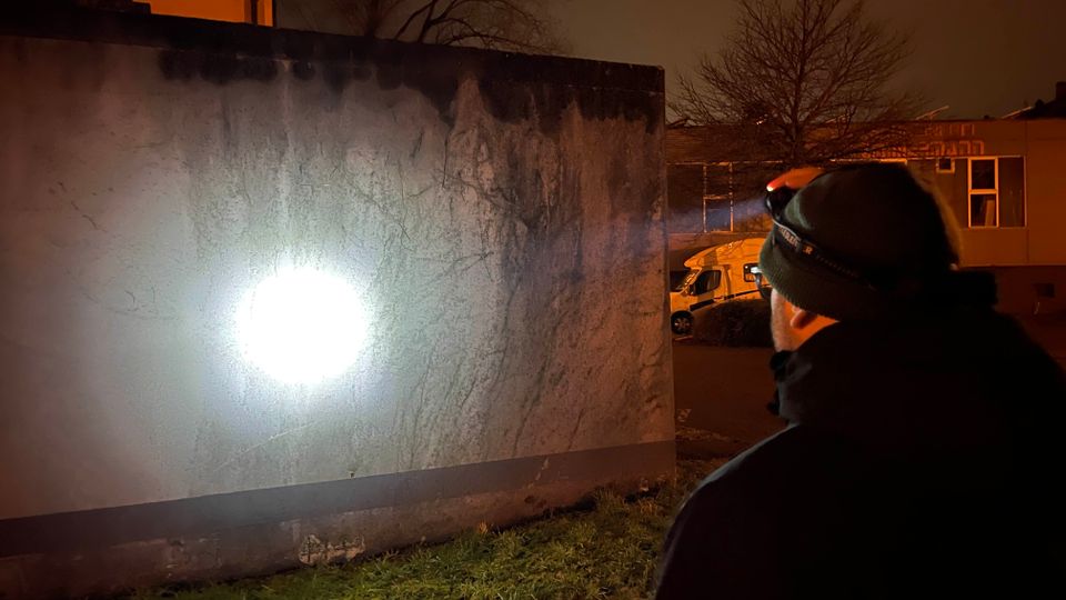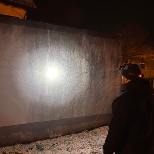 Im Stirnlampen‑Test der Ledlenser H7R Core fiel zuerst der stark ausgeprägte zentrale Lichtbereich auf. Auf einer Distanz von sieben Metern konzentrierte sich die Helligkeit deutlich im Kern des Kegels, während der Randbereich sichtbar schwächer blieb. Diese Charakteristik machte entfernte Objekte klar erkennbar. Der Lux‑Eindruck im Zentrum blieb auch bei Bewegung stabil. Der fokussierte Strahl zeigte klar abgegrenzte Reichweite.