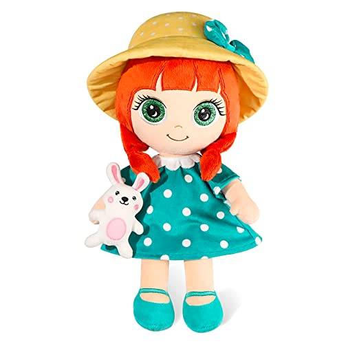 Die Ivy-&-Lily-Stoffpuppe, die uns hier gezeigt wird, besteht aus besonders weichem Polyesterplüsch und eignet sich daher bereits für Kleinkinder ab etwa 12 Monaten.