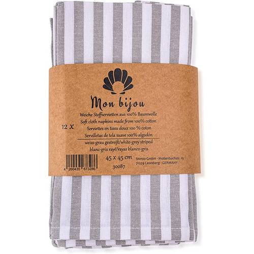 Tipp: Stoffservietten kaufen Sie in der Regel nicht einzeln. Für Privathaushalte sind Sets mit 2, 4, 6 oder 12 Stück üblich. Benötigen Sie Stoffservietten für die Gastronomie, erhalten Sie auch Sets mit beispielsweise 50 Servietten.