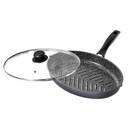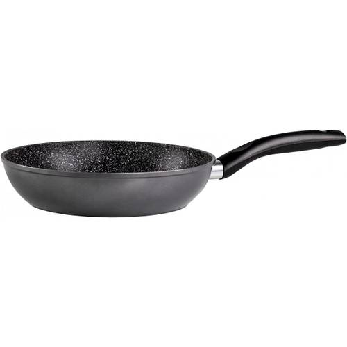 Dieses ist eine 24-cm-Stoneline-Pfanne, wie wir erkennen können, mit der typischen Beschichtung, die an Terrazzo erinnert.
