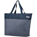 Der Anndora XXL-Shopper in Navy-Blau-Weiß überzeugt uns mit seiner geräumigen, leichten und robusten Struktur. Mit einer Belastbarkeit von 20 kg und einem Volumen von 40 Litern ist die Tasche ideal für Strand, Sauna und Einkäufe. Die Kombination aus einem großen Hauptfach mit Reißverschluss und zusätzlichen Innen- und Außentaschen sorgt für optimale Organisation und schnellen Zugriff.