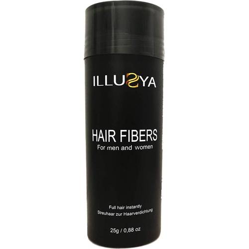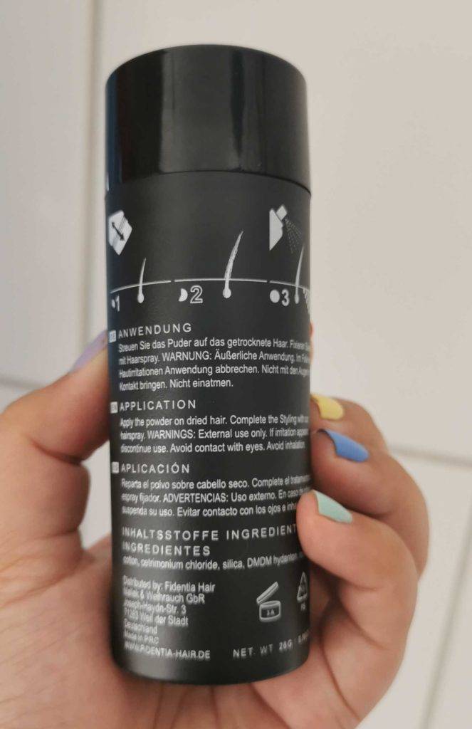 Während bei diesem Streuhaar von Fidentia Baumwollfasern verwendet werden, gibt es auch Produkte mit Keratinfasern.
