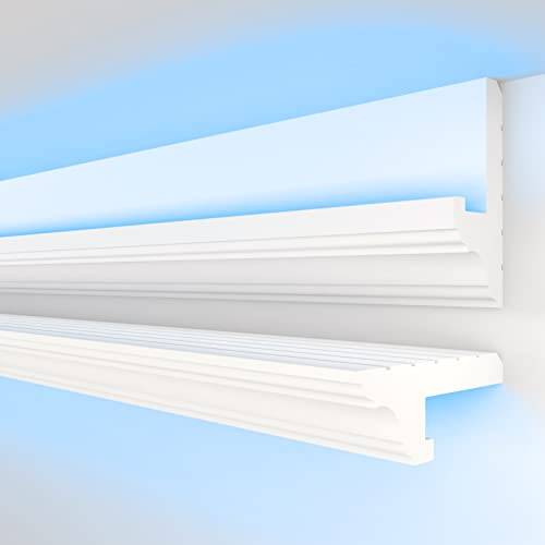 Tipp: Einen besonderen Blickfang können Sie mit Stuckleisten mit LED-Beleuchtung kreieren. Die Leisten sorgen in Kombination mit einem LED-Strip für eine indirekte Ausleuchtung des Raumes und schaffen so ein gemütliches Licht, das nicht blendet.