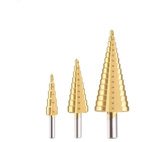 Tipp: Typisch für die Titan-Nitrid-Beschichtung (TiN) ist eine gold-gelbe Färbung. Die besten Stufenbohrer sind allerdings mit einer silbrigen Titan-Aluminium-Nitrid-Beschichtung(TiAlN) versehen. Diese hat eine noch höhere Oxidations- und Temperaturbeständigkeit.