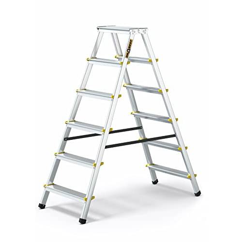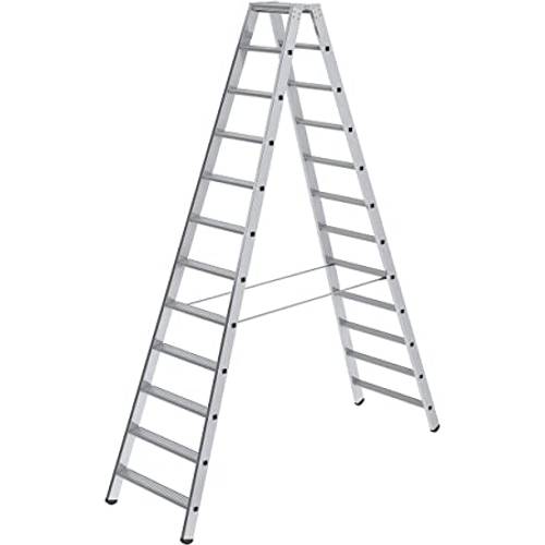 Die meisten Sprossen von Stufenstehleitern sind zwischen 10 cm und 14 cm breit. Dies erlaubt einen sicheren Halt für die Füße und Sie können leichter auf den Leitern stehen.