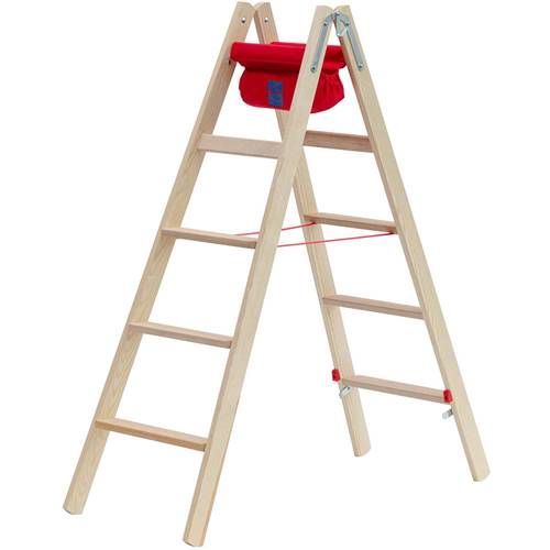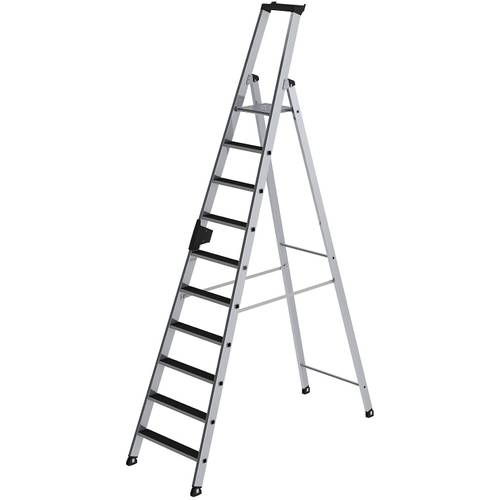 Hinweis: Im gewerblichen Bereich werden aus Sicherheitsgründen Plattformleitern bevorzugt, die neben Stufen und einer verriegelnden Plattform auch seitliche Geländer im oberen Bereich (1 m) aufweisen.