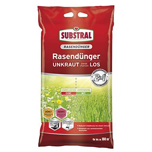Substral-Rasendünger mit Unkrautvernichter ist konzipiert, um störende Unkräuter wie Klee und Löwenzahn zu bekämpfen. Substral-Rasendünger mit Moosvernichter hingegen geht speziell gegen störende Moosteppiche im schönen Grün vor. Beide düngen gleichzeitig den Rasen, damit das Gras rasch die von Unkraut und Moos befreiten Stellen begrünen kann.