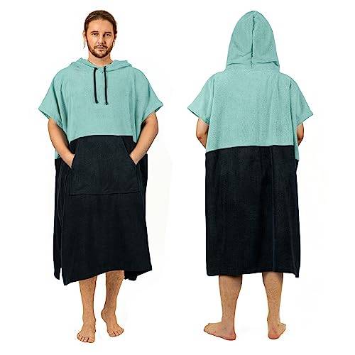 Sowohl Surf-Ponchos aus Baumwolle als auch Ponchos aus Mikrofaser haben Vorteile. Während Baumwolle besonders weich ist und Sie gut warm hält, ist Mikrofaser häufig saugfähiger und trocknet schneller. Hier müssen Sie abwägen, was Ihnen am wichtigsten ist.