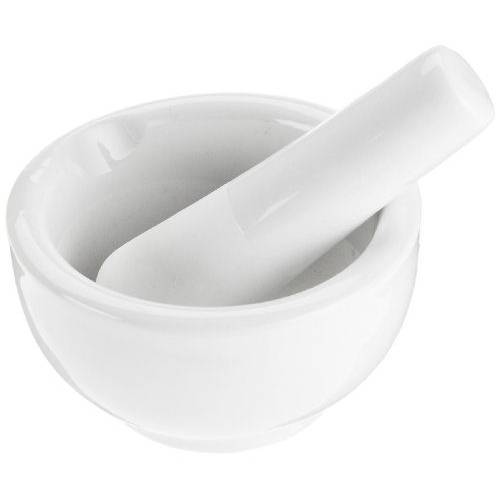 Schlichtes und zeitloses Design, das auch gut in der Küche verwendet werden kann: Tablettenmörser aus Porzellan.