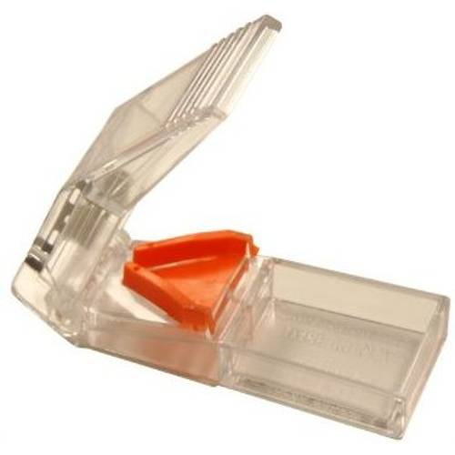 Um die Tablette möglichst exakt und ohne Krümel zu spalten oder zu vierteln, ist es wichtig, dass Sie auf eine scharfe und stabile Klinge achten. Durch eine gute Klinge stellen Sie sicher, dass der Tablettenteiler auch harte Pillen sauber spalten kann.