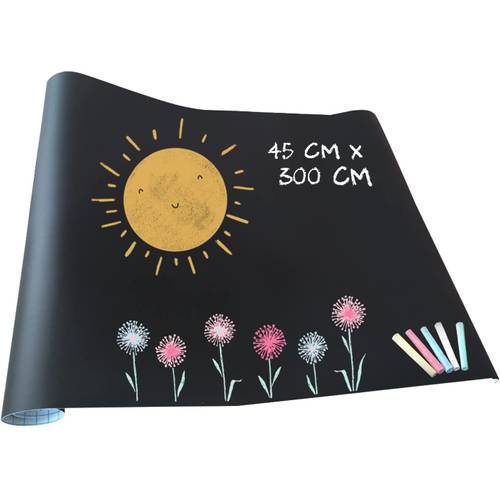 Die sauberere Alternative ist selbstklebende Folie. Sie eignet sich besonders gut, wenn man eine kleine Kreidetafel in der Küche oder im Kinderzimmer anbringen möchte und lässt sich in der Regel wieder rückstandslos entfernen. Der Nachteil: Die Folie ist nur für glatte Oberflächen geeignet – auf Raufasertapete hält sie z.B. weniger gut.