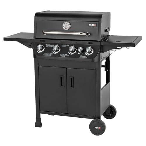 Der Taino Red 4+1-Gasgrill besticht durch seine vielseitige Funktionalität und hochwertige Verarbeitung. Mit vier Hauptbrennern aus Edelstahl und einem praktischen Seitenbrenner bietet er genügend Flexibilität für verschiedene Grillmethoden. Besonders überzeugt sind wir von der emaillierten Grillfläche, die eine einfache Reinigung ermöglicht, und dem effizienten Fettsammel-System.