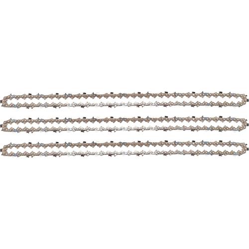 Eine Halbmeißelkette ist an den abgerundeten Zähnen zu erkennen. Dadurch, dass die Zähne nicht scharfkantig sind, ist diese Motorsägenkette etwas unempfindlicher. Dies wirkt sich letztendlich auf die Schnittleistung aus. Laut verschiedenen Tallox-Sägeketten-Erfahrungen aus dem Internet werden Halbmeißelketten bevorzugt im Hobby- und Heimwerkerbereich eingesetzt.
