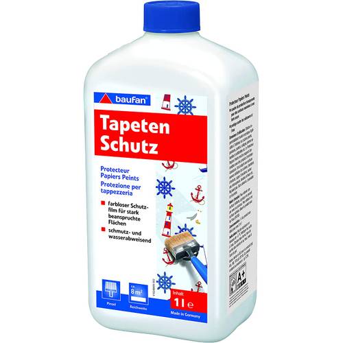 Handelsübliche Tapeten können durch einen Tapetenschutz in flüssiger Form schmutz- und staubabweisend sowie abwaschbar versiegelt werden. Der Schutz einer Tapete ist transparent und bietet sich für stark beanspruchte Räume wie ein Kinderzimmer, einen Flur oder ein Büro an. Einige Produkte wie der Molto-Tapetenschutz eignen sich ebenso für den Schutz glatter Oberflächen wie Ziegel im Außenbereich.