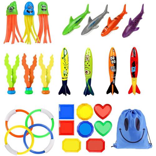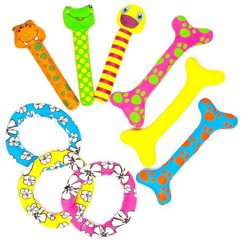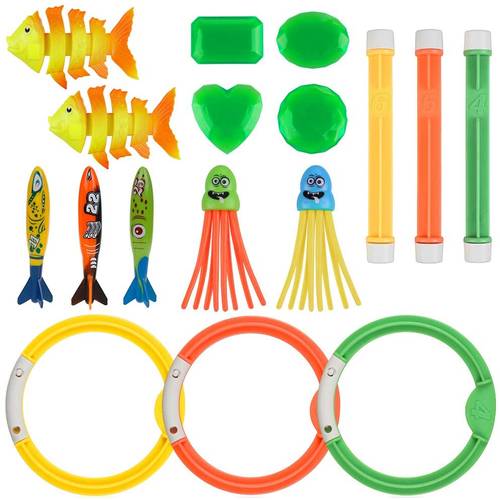 Für abwechslungsreichen Tauchspaß sollten Sie darauf achten, ein komplettes Set mit verschiedenen Formen wie Tauchringen, -stäben oder -bällen zu erwerben. Da die unterschiedlichen Figuren differenzierte Ansprüche an die Motorik beim Greifen und Werfen stellen, bleibt der Spaßfaktor dauerhaft hoch.