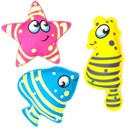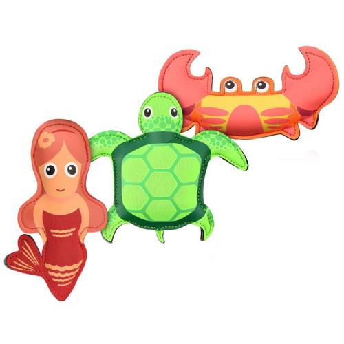 Dank unterschiedlicher Formen und Gewichte sinken die Teile des Splash-Buddies-Tauchspielzeugs laut Hersteller in variierendem Tempo und fördern so die Tauchfähigkeit spielerisch.