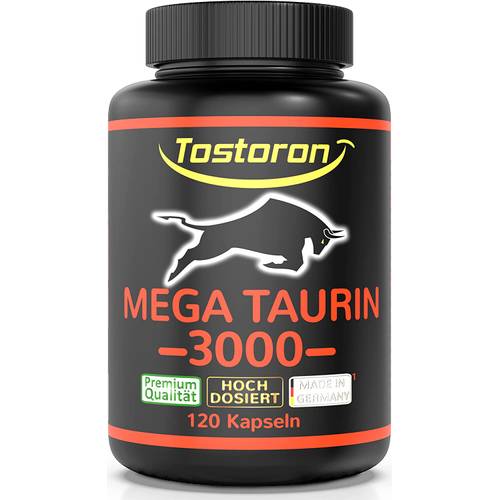 Platz 2 | Tostoron MEGA TAURIN 3000 extra stark | ca. 39 € | 3 x 1 Kapsel täglich ca. 0,99 € | 150 mg – sehr geringe Dosis | ![]() ![]() | |