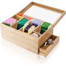 Sehr beliebt sind Bambus-Teeboxen, es gibt aber auch Modelle aus einer mitteldichten Holzfaserplatte (MDF-Platte). Letztere sind laut Kundenrezensionen jedoch oft nicht so hochwertig und das Holz kann leicht splittern. Hochwertige Bambus-Teeboxen gibt es u. a. von Kesper oder Zeller.