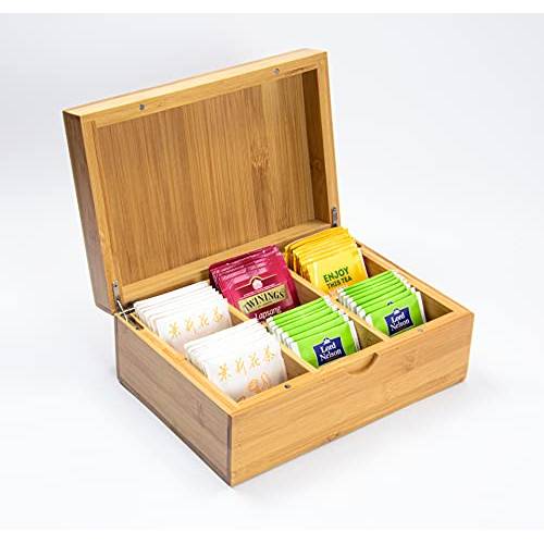 Sie können Ihre Teebeutelsammlung auch in einer Metalldose aufbewahren. Aber so eine naturbelassene oder weiße Teebox aus Holz oder einem anderen Material ist neben Wasserkocher und Teekanne ein schöner Blickfang in Ihrer Küche. Wenn Sie Gäste haben, können diese sich außerdem aus der optisch ansprechenden Teebox aus Bambus selbst bedienen.