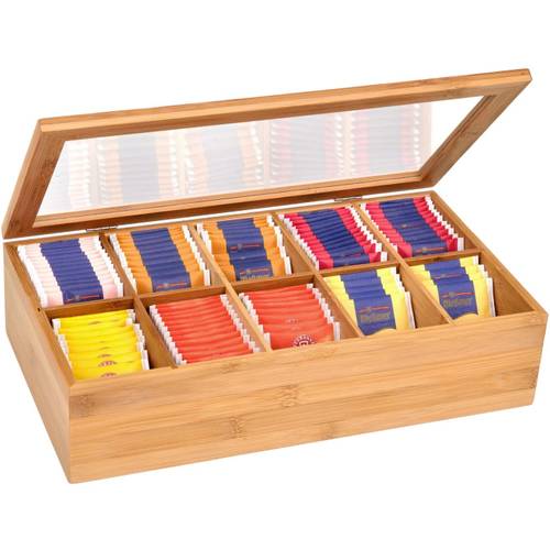 Eine Teebox für Teebeutel schützt vor vorzeitigem Verlust des Aromas und verlängert die Haltbarkeit. So eine große Teebox bietet aber auch Platz für viele Teebeutel, die meist nebeneinander verstaut werden. Sie sehen auf einen Blick, welche Teesorten Sie zuhause haben bzw. wann Sie Tee nachkaufen müssen.