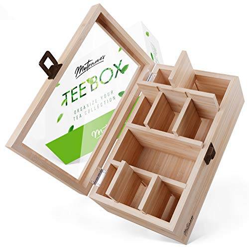 Die besten Teeboxen verfügen über ein Sichtfenster, wodurch jederzeit Anzahl und Auswahl der zur Verfügung stehenden Beutel zu erkennen sind. Diese bestehen häufig aus strapazierfähigem Kunststoff, einige Modelle verfügen aber auch über Glassichtfenster. Dadurch kann selbst eine kleine Teebox etwas mehr wiegen.