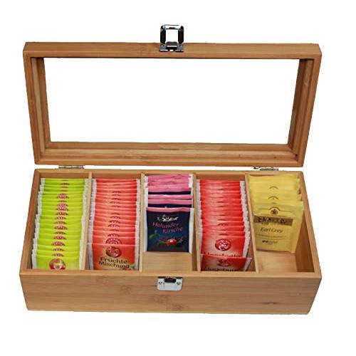 Die getestete Teeboxen im Internet verfügen in der Regel über Fächer. Besonders häufig gibt es die Teebox mit 6-Fächern. Diese Anzahl ist für durchschnittliche Teetrinker ausreichend, weil hier sechs verschiedene Teebeutelsorten einsortiert werden können. So können Sie aromatisch duftende Sorten wie Ingwertee von Rooibos-Tee getrennt aufbewahren.